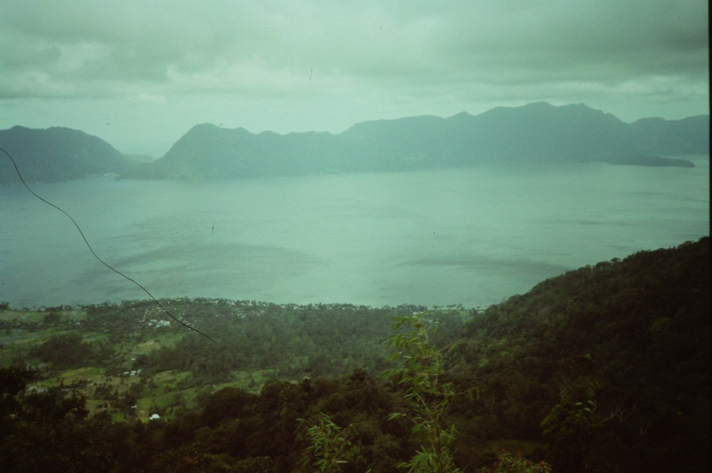 No sé cuántas horas tardamos en llegar a la orilla del lago, pero pudieron ser perfectamente tres. Las primeras casas del pueblo ya se divisaban cuando C. me avisó de que ella no podía entrar en él en ese estado. Efectivamente de la docena de culetazos que había ido pegando la parte trasera de pantalón se le había hecho trizas y llevaba toda la braga al aire. Así que tuvo que quedarse sola allí un buen rato hasta que yo llegué al centro del pueblo, encontré una tienda y le compré un sarong. Con él puesto y con el susto todavía en el cuerpo esperamos, sentados en un café mirando el lago sin hablar, el bus que nos llevaría a Bukittinggi.
