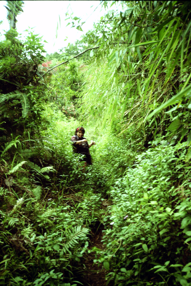 Efectivamente el camino hacia la cima se abría entre unos impresionantes cafetales. Por entonces yo ya me había comprado en una librería de Bukittinggi un pequeño diccionario inggris-indonesia / indonesia-inggris con el que trataba de formar frases con ayuda de la guía de conversación que llevé de España. Como no teníamos manera de averiguar cuánto nos quedaba empecé a preguntar a los campesinos que trabajaban en los cafetales o a los que nos encontrábamos en el camino. Yo les preguntaba ¿Berapa kilo? (cuántos kilómetros) y les señalaba la cima, o la dirección de la cima. Ellos se reían mucho y me enseñaban algunos dedos, dos, tres cuatro, seis, nunca ninguno me dio la misma cantidad. Imagino que la mayoría, por no decir todos, no tenían ni idea del bahasa indonesia y solo hablaban algún dialecto sumatrés. O tal vez no medían de la misma manera y lo hacían con otro sistema o incluso, lo que sería más lógico, por medidas de tiempo…