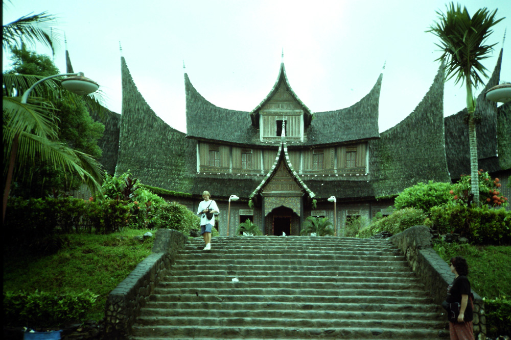Los minangkabau fue una etnia muy particular, con sociedades tradicionalmente matrilineales, en las que tanto la propiedad, como la transmisión de valores, cuyo conjunto recibe el nombre de adat, son cosa de las mujeres. Los clanes viven en casas que son propiedad de las madres y de las esposas que son las que deciden qué hombres pueden y cuales no vivir bajo ese techo. Durante varios siglos el islam al que se fueron convirtiendo poco a poco desde el siglo XIII, convivió armónicamente con el adat y el matriacado, a pesar de que en algunas ocasiones los minangkabau tuvieron que defender incluso con las armas su derecho a mantener ese sincretismo contra el poder de los sultanes, que acicateados por los ulemas intentaban imponer la ortodoxia patriarcal islámica. Incluso cuando nosotros fuimos la cosa no estaba demasiado tensa de nuevo, con la nueva oleada de fundamentalismo islámico que provenía de Aceh, el estado del norte en el que está implantada la shari’a . De hecho nos sorprendió gratamente el hecho de que muchos de los restaurantes callejeros se encontraban cubiertos por unos enormes plásticos negros, de manera que siendo ramadán quien quisiera podía comer durante el día perfectamente a salvo de las miradas y los reproches de sus vecinos más estrictos. Pero por las noticias que me llegan últimamente las cosas están cambiando muy rápidamente y las brutales presiones del wahabismo y las diversas cabezas del salafismo sobre todas las comunidades musulmanas del mundo están empezando a resquebrajar el edificio sociovital tradicional de los minangkabau.