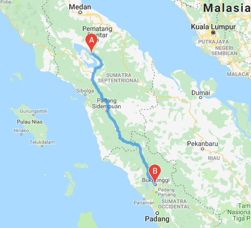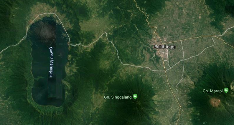 Bukitttingi es una ciudad cafetera de interior situada en una zona alta a 80 kmts. de la capital de Sumatra occidental, Padang, que se encuentra en la cosa. Ya he mencionado al Merapi, que de vez en cuando recuerda que está perfectamente en activo, aunque nosotros no tuvimos oportunidad de comprobarlo. Otros de sus atractivos geográficos son los dos lagos del mismo origen que el Toba, la excursión a uno de los cuales constituyó una de nuestras más peligrosas aventuras.